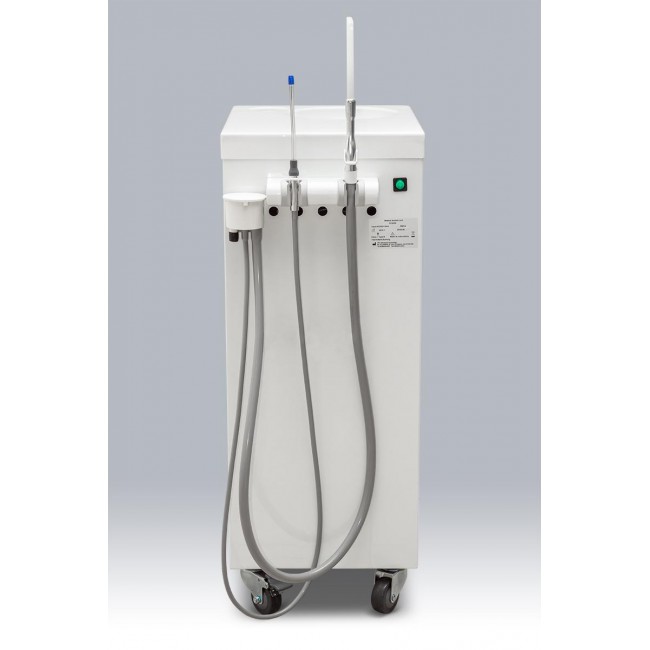 Стоматологический аспиратор обеспечивает хороший уровень аспирации, и его работа не зависит от работы самой стоматологической установки. Аспиратор (с ручным опустошением резервуара) может легко перемещаться из одного кабинета в другой, поэтому его можно применять для экстренного обеспечения дополнительного вакуума при централизованной сети аспирации или вместо аспиратора самой стоматологической установки. В аспираторе также имеется дополнительная функция: плевательница с омывателем.