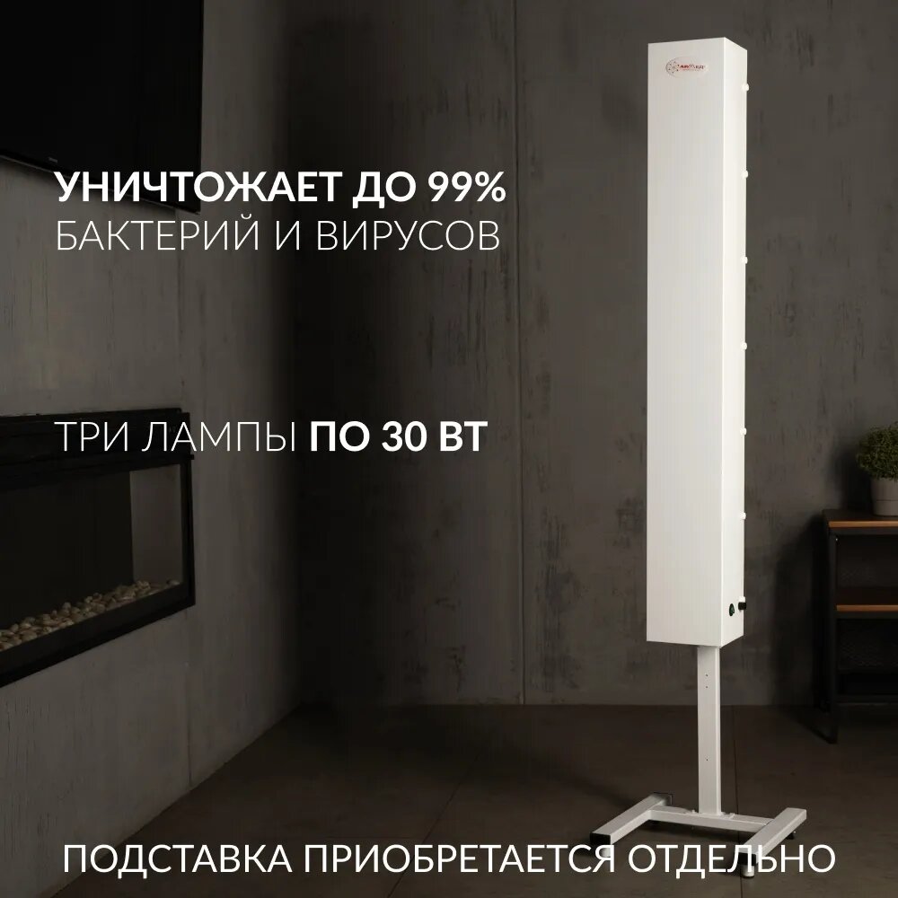 Рециркулятор обеспечивает эффективное очищение воздуха от вирусов, бактерий и споров плесени, являющихся причиной тяжёлых заболеваний и простуд, а также снижающих иммунитет. Вентиляционные решётки расположены на верхней и нижней панелях, обеспечивая свободное перемещение воздушного потока и защищая от прямых УФ-лучей. Пользоваться рециркулятором просто, достаточно нажать клавишу включения.