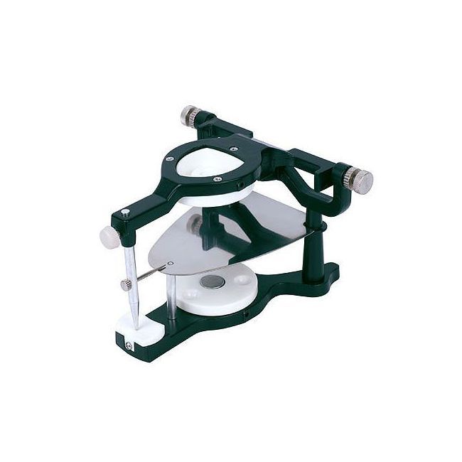 Состоит из двух рам (верхней и нижней), соединенных простым шарниром, винта для удержания нужной высоты прикуса, постановочного столика, монтажных пластин и резцового штифта, регулируемого по высоте.