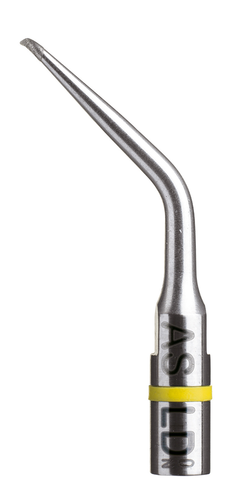 Насадка для скайлера ASLD, с алмазным покрытием, левосторонняя, маленький узкий кончик, для апикальной хирургии жевательной группы зубов. Длина рабочей части 3мм, конусность10%. Алмазное покрытие 30 мкм. Насадкой работают без излишнего давления. Отличное качество алмазного покрытия позволяет работать с малой мощностью и при этом эффективно.