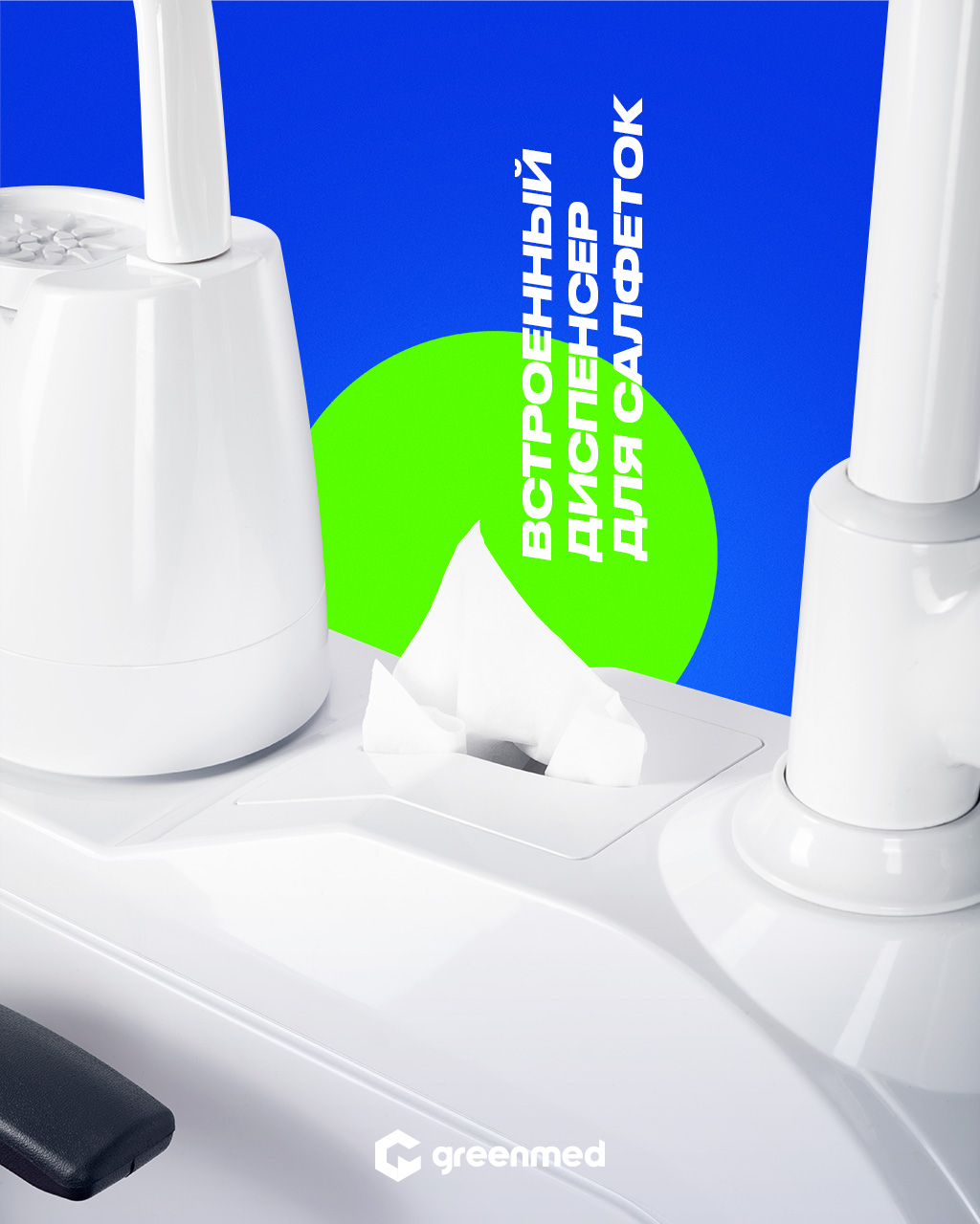 Встроенный диспенсер для салфеток, удобный и аккуратный, позволяет легко вынимать салфетки, поддерживать порядок в момент и после процедуры.