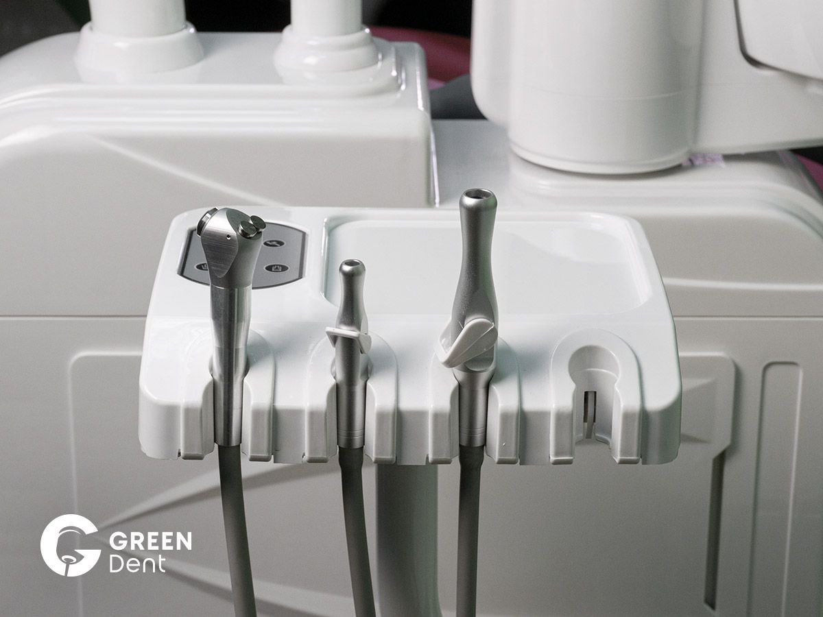 • Модуль ассистента на 4 инструмента с пылесосом и слюноотсосом, пистолетом вода-воздух и свободным местом, для полимеризационной лампы или интраоральной камеры.