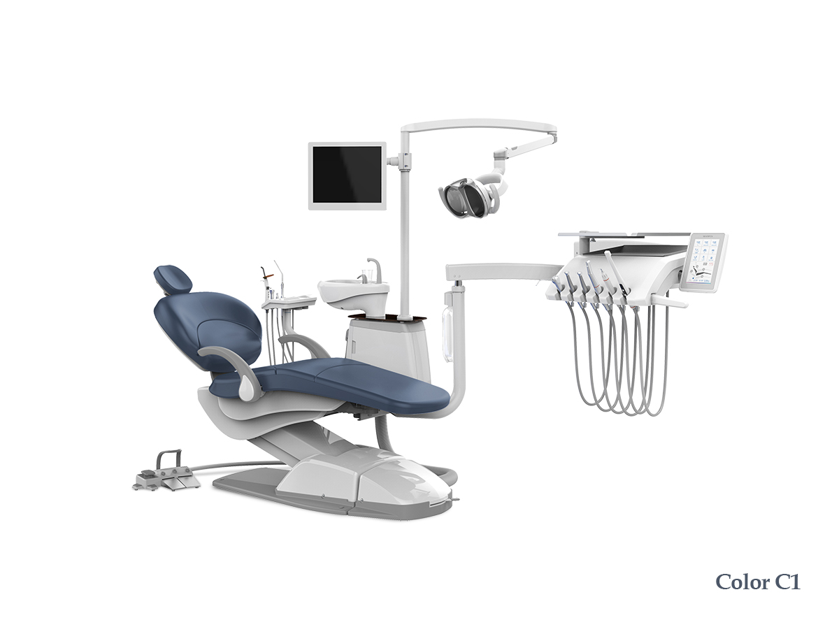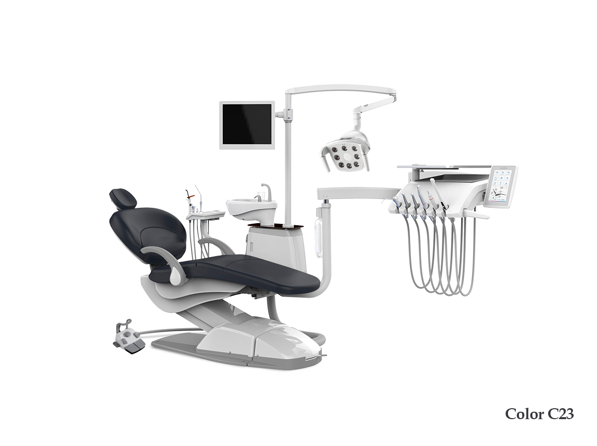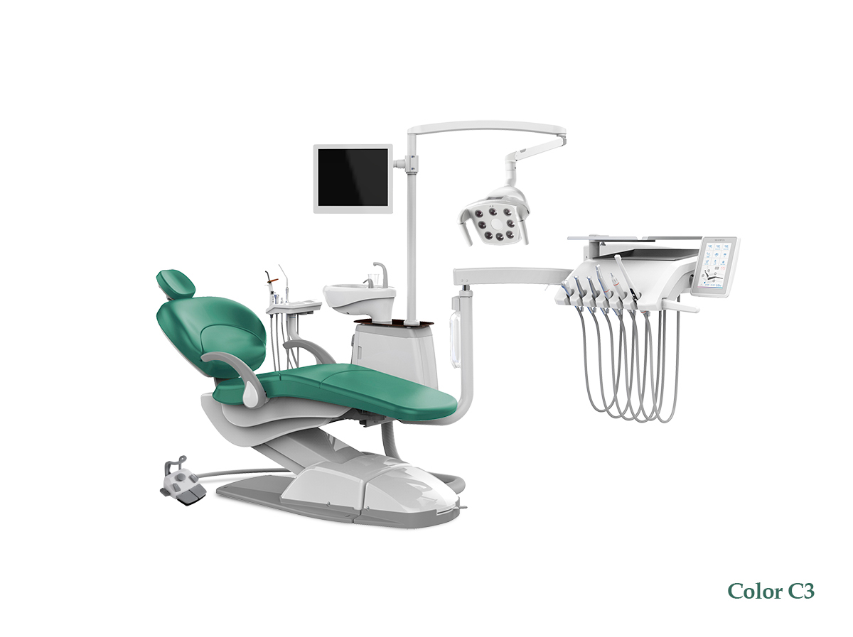 • стоматологическая установка со столиком с нижней подачей инструментов на двойном пантографическом плече