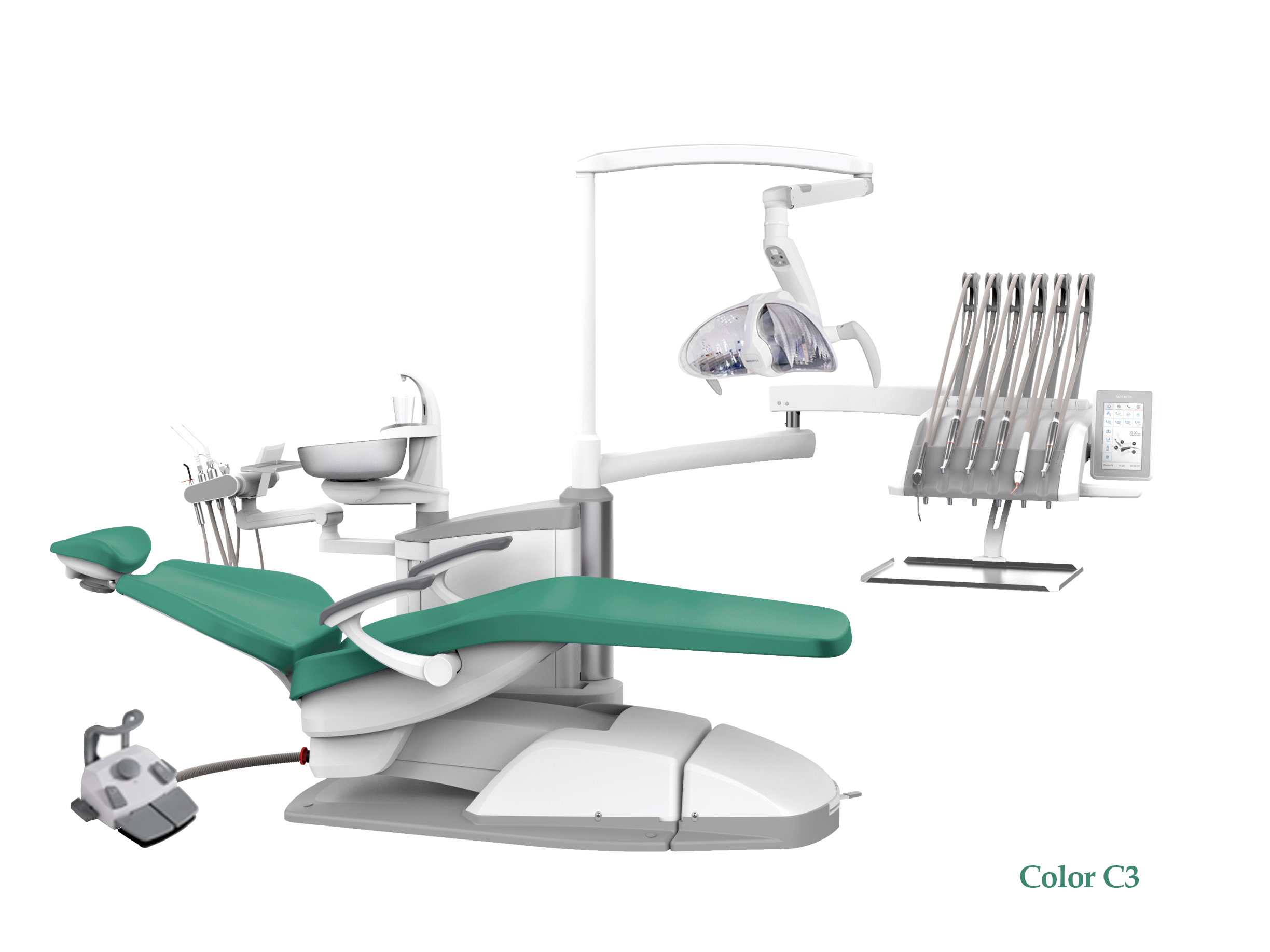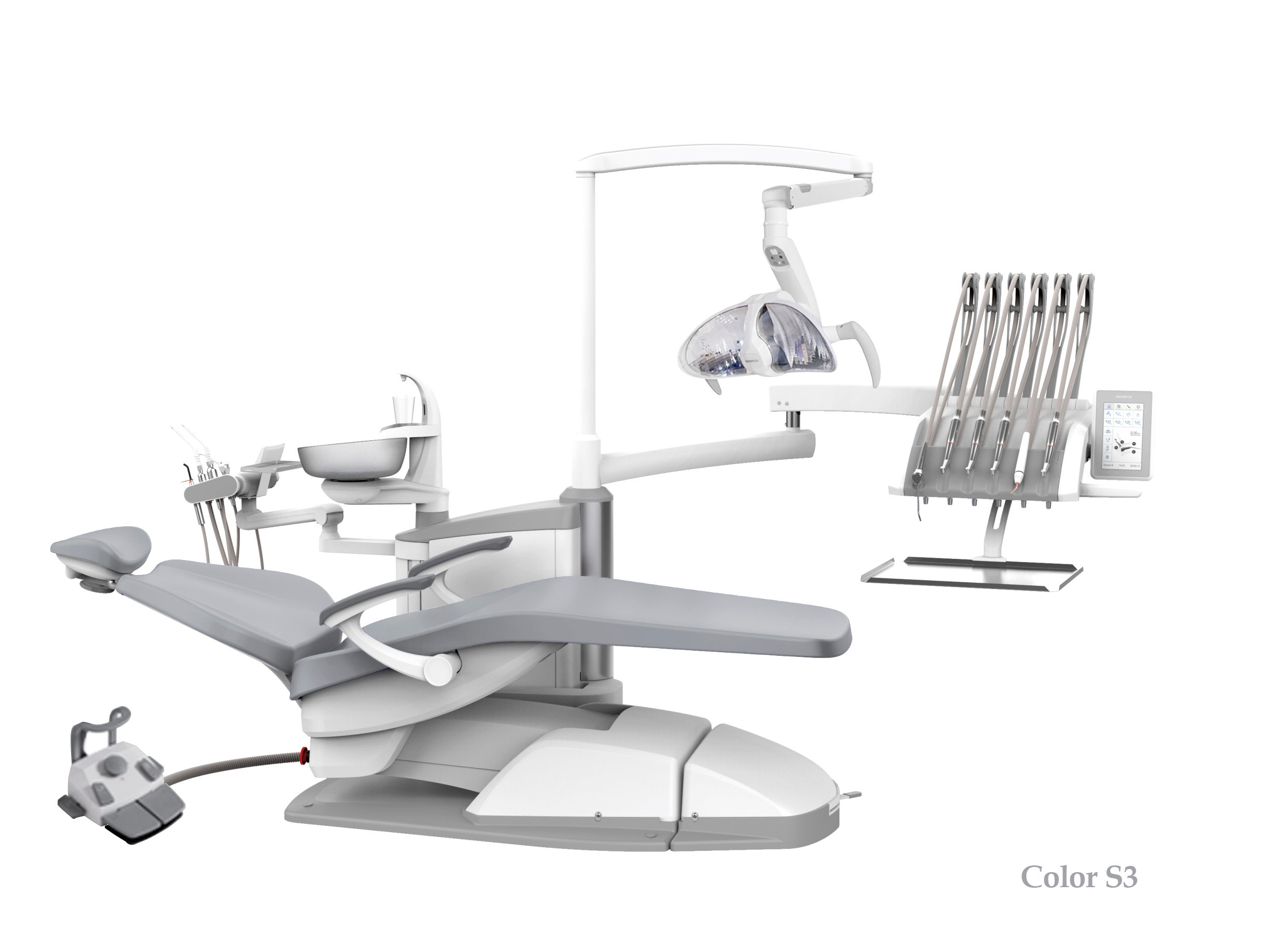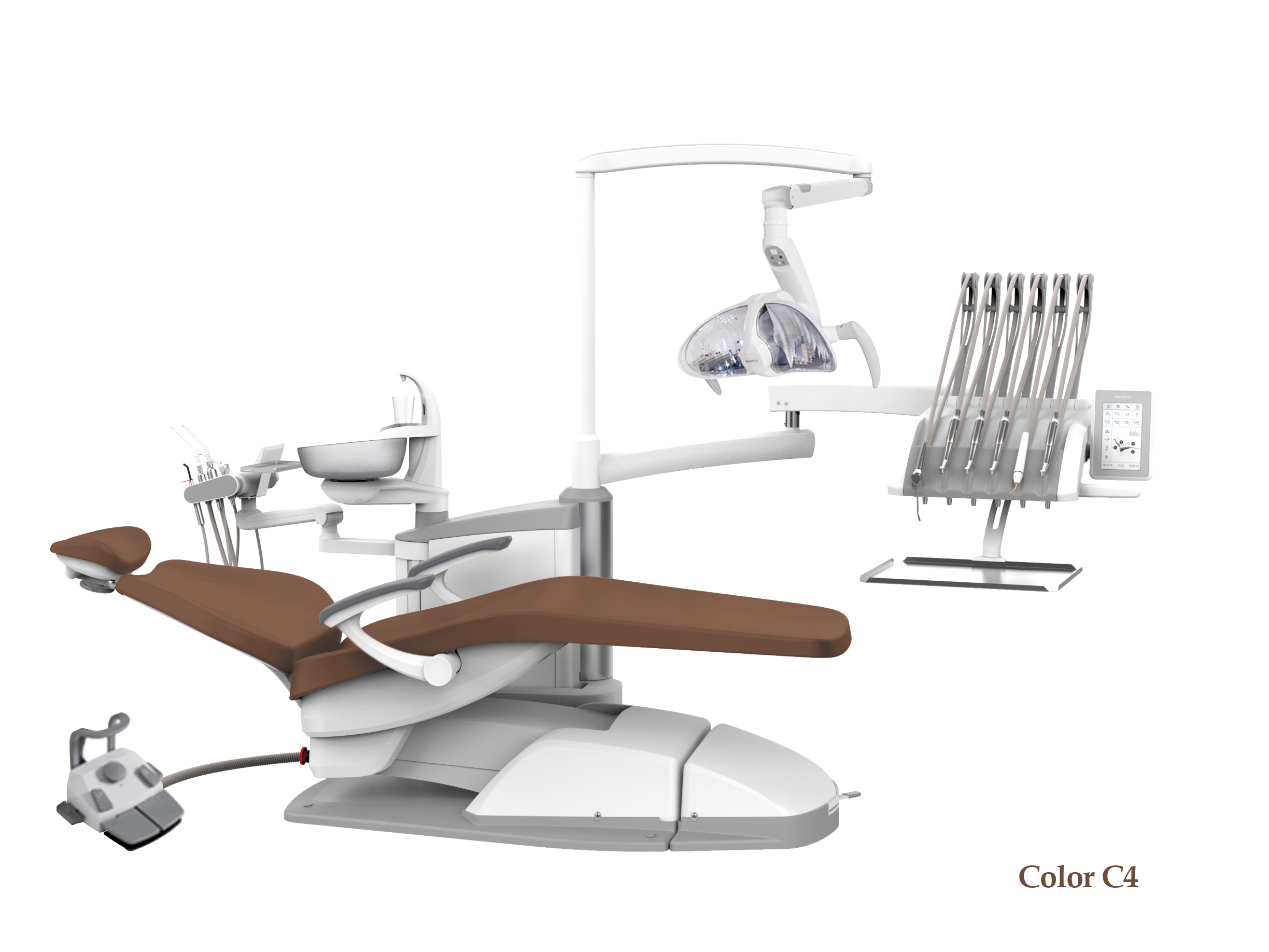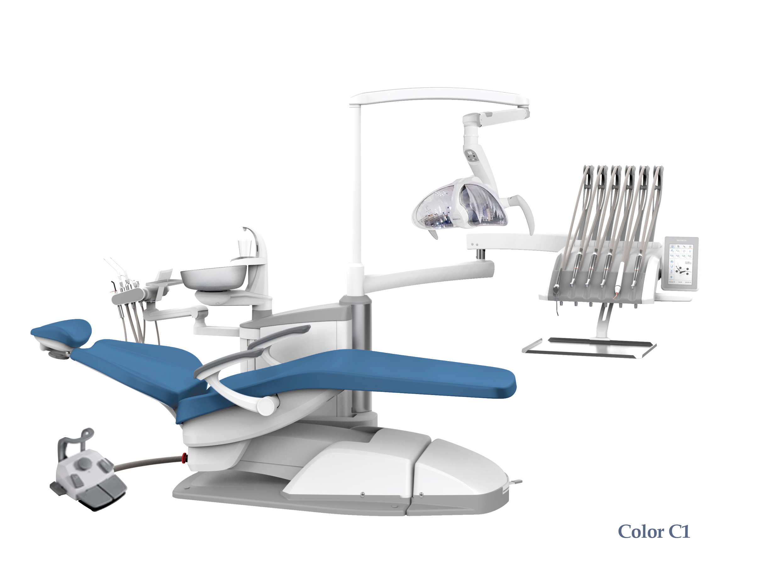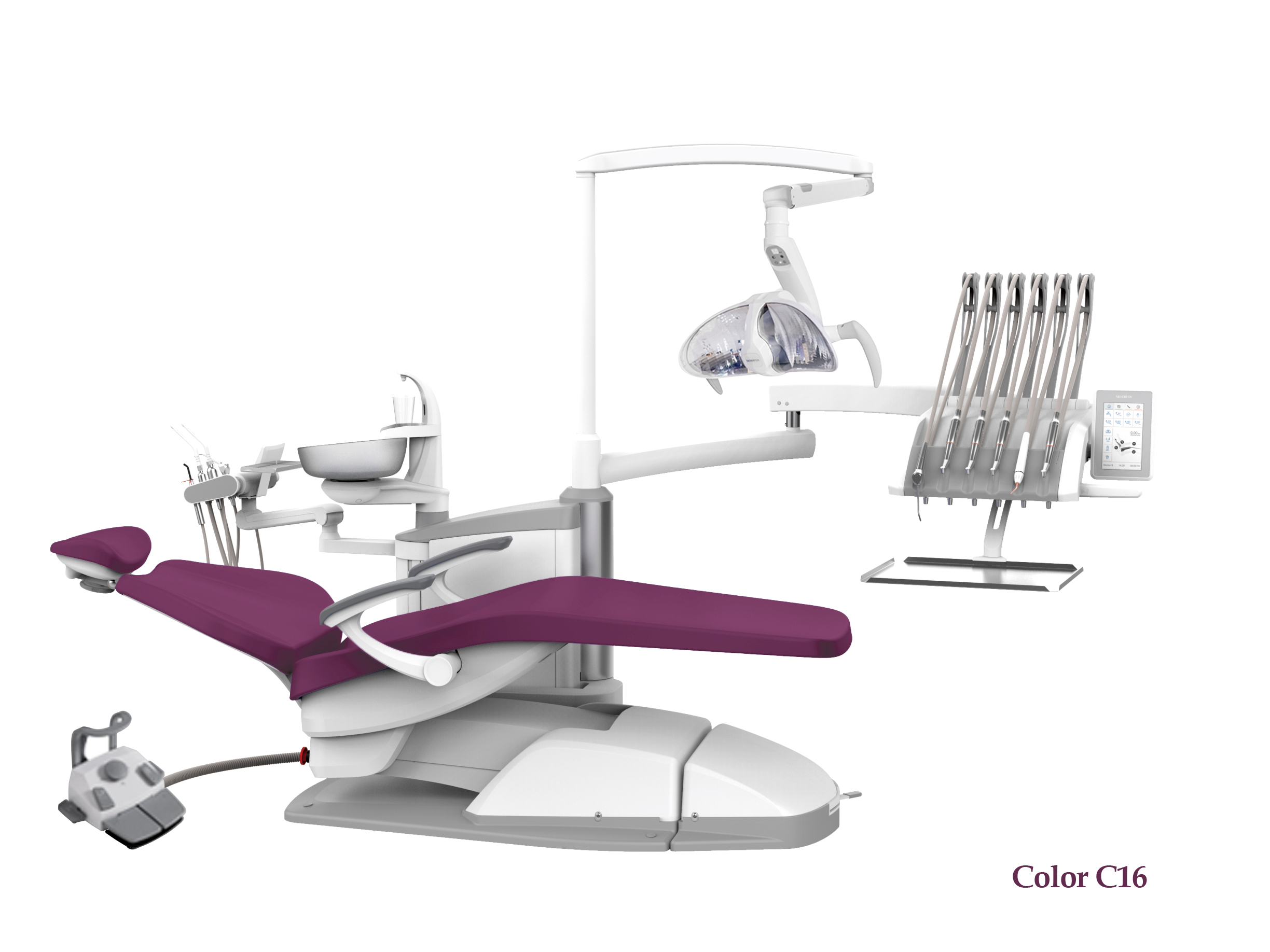 SILVERFOX 8000C-SRS0 – Стоматологическая установка с верхней подачей и с мягкой обивкой