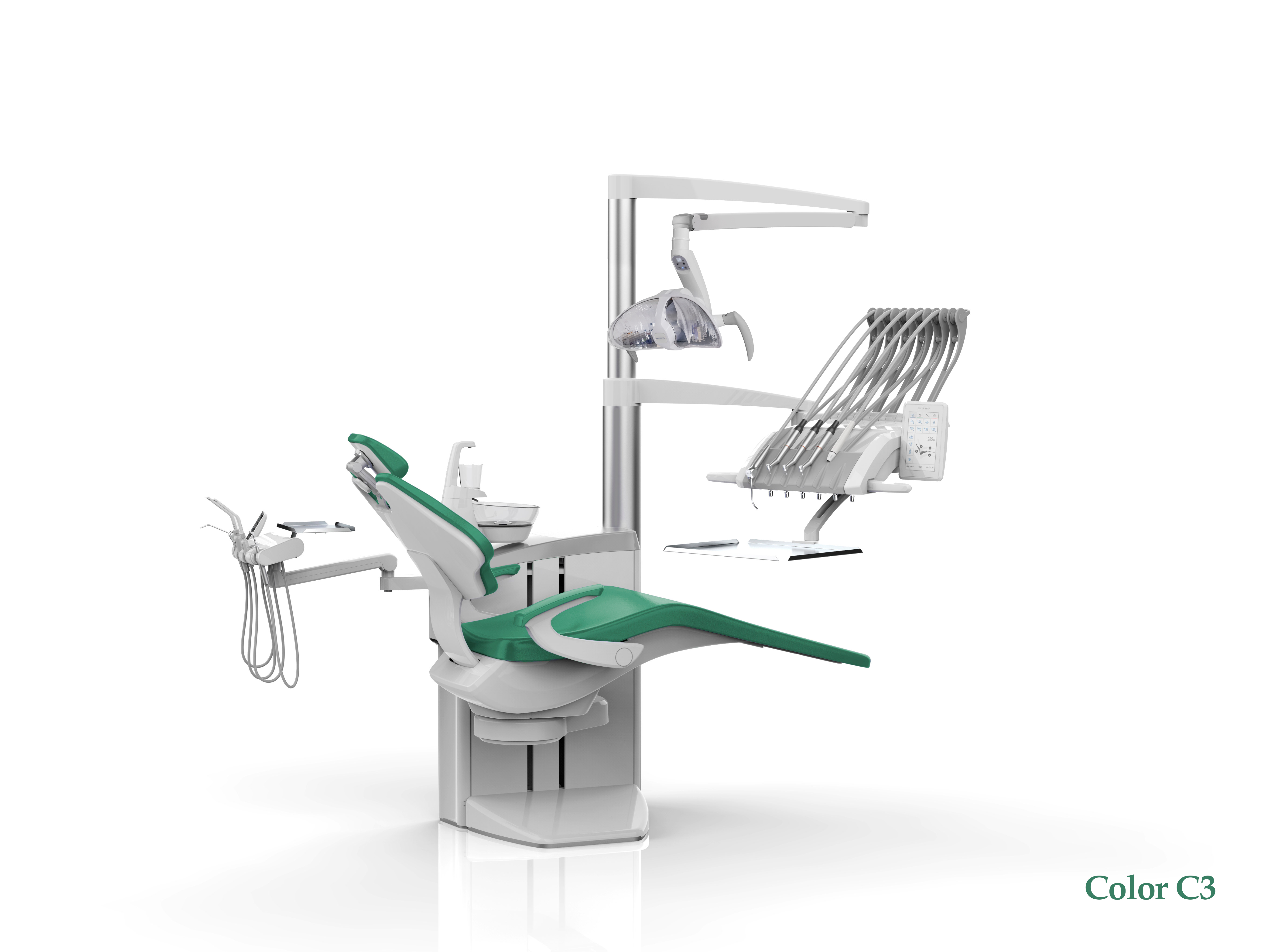 • стоматологическая установка со столиком с верхней подачей инструментов на двойном пантографическом плече