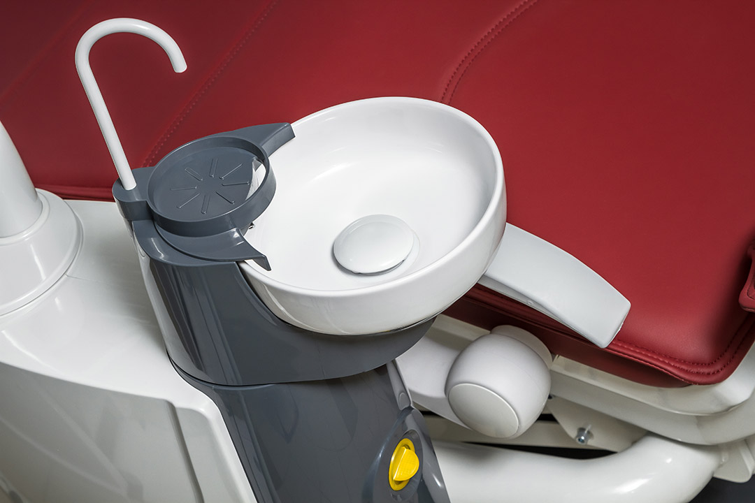 • Керамическая плевательница, легкосъёмная и автоклавируемая, поворачивается на 90 градусов.