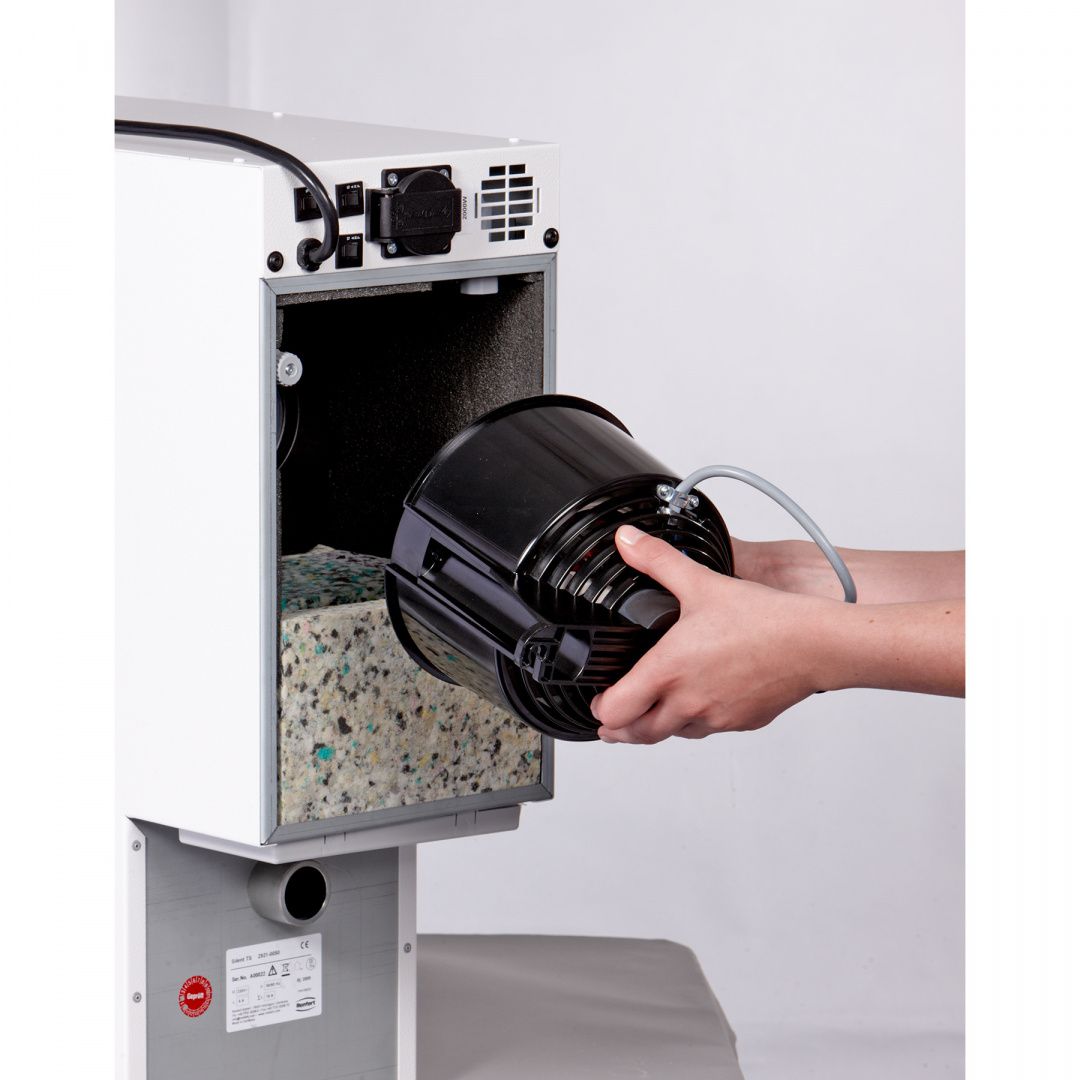 - При вытяжке без пылесборника очистка фильтра тонкой очистки осуществляется пневматически или механически. После каждого цикла очистки фильтр тонкой очистки снова очищен и готов к эксплуатации.
